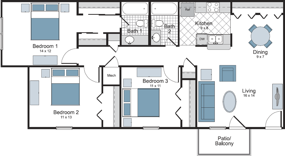 Three Bedroom / Two Bath