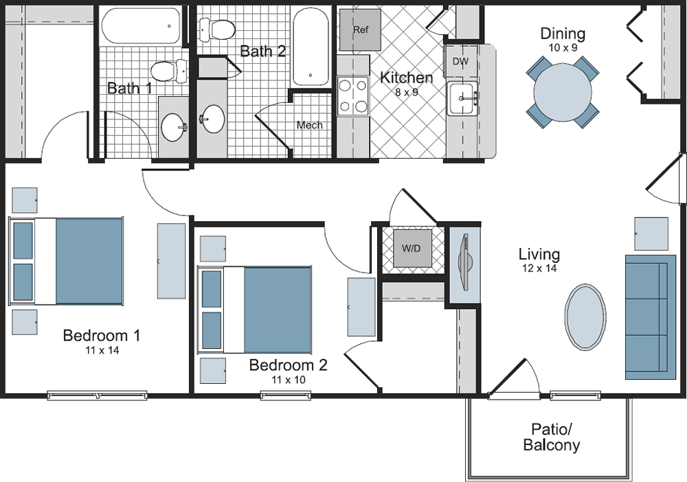 Two Bedroom / Two Bath